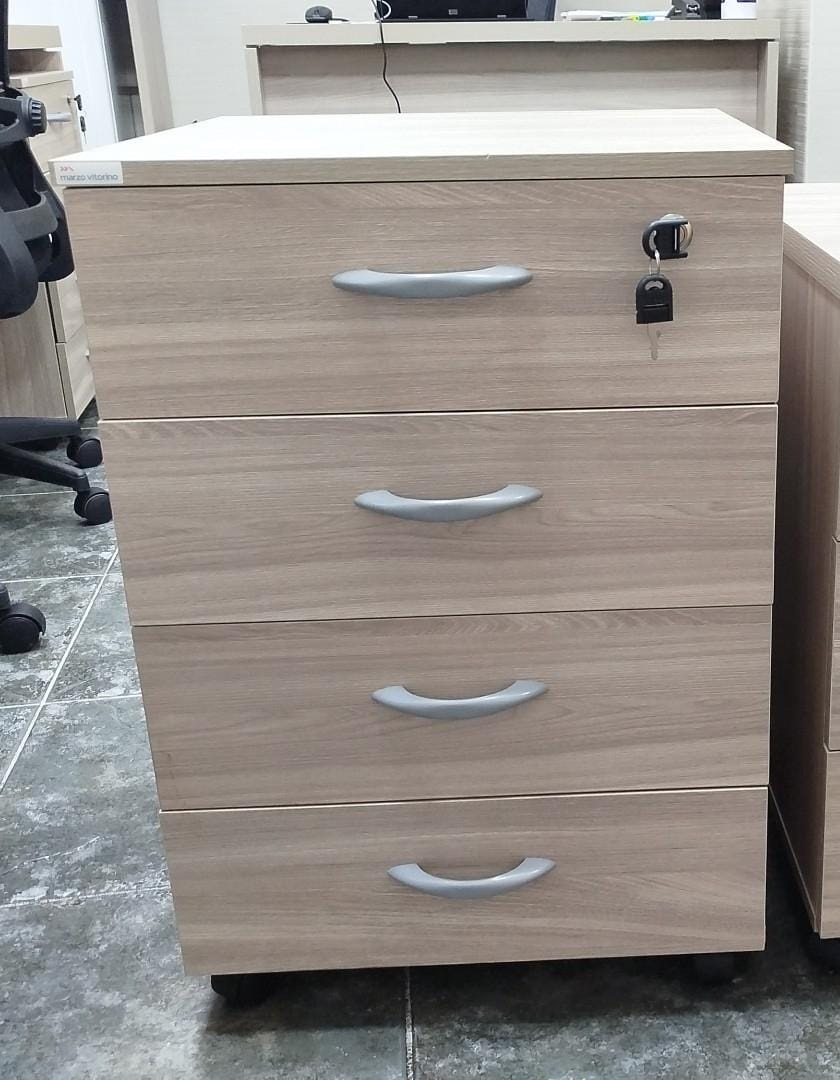 Gaveteiro Volante 4 Gavetas Chave Porquinho 15 mm Cor Fresno Sbiancatto