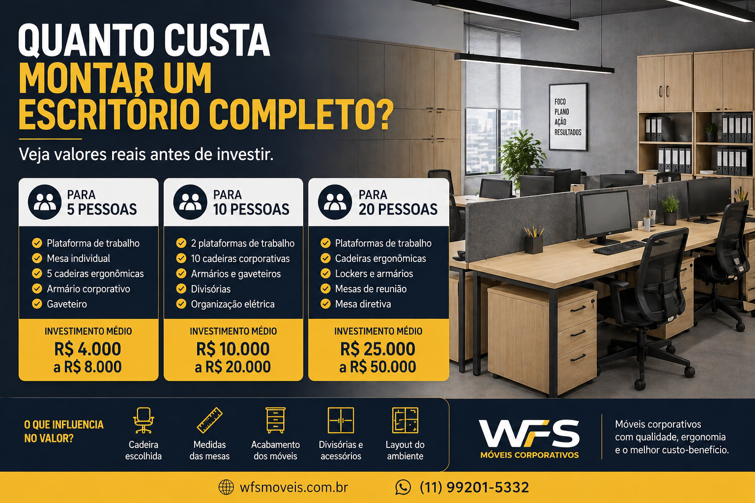 A resposta depende de fatores como quantidade de colaboradores, acabamento dos móveis, cadeiras escolhidas e estrutura do espaço. A boa notícia é que com planejamento, é possível montar um escritório profissional sem desperdiçar capital.